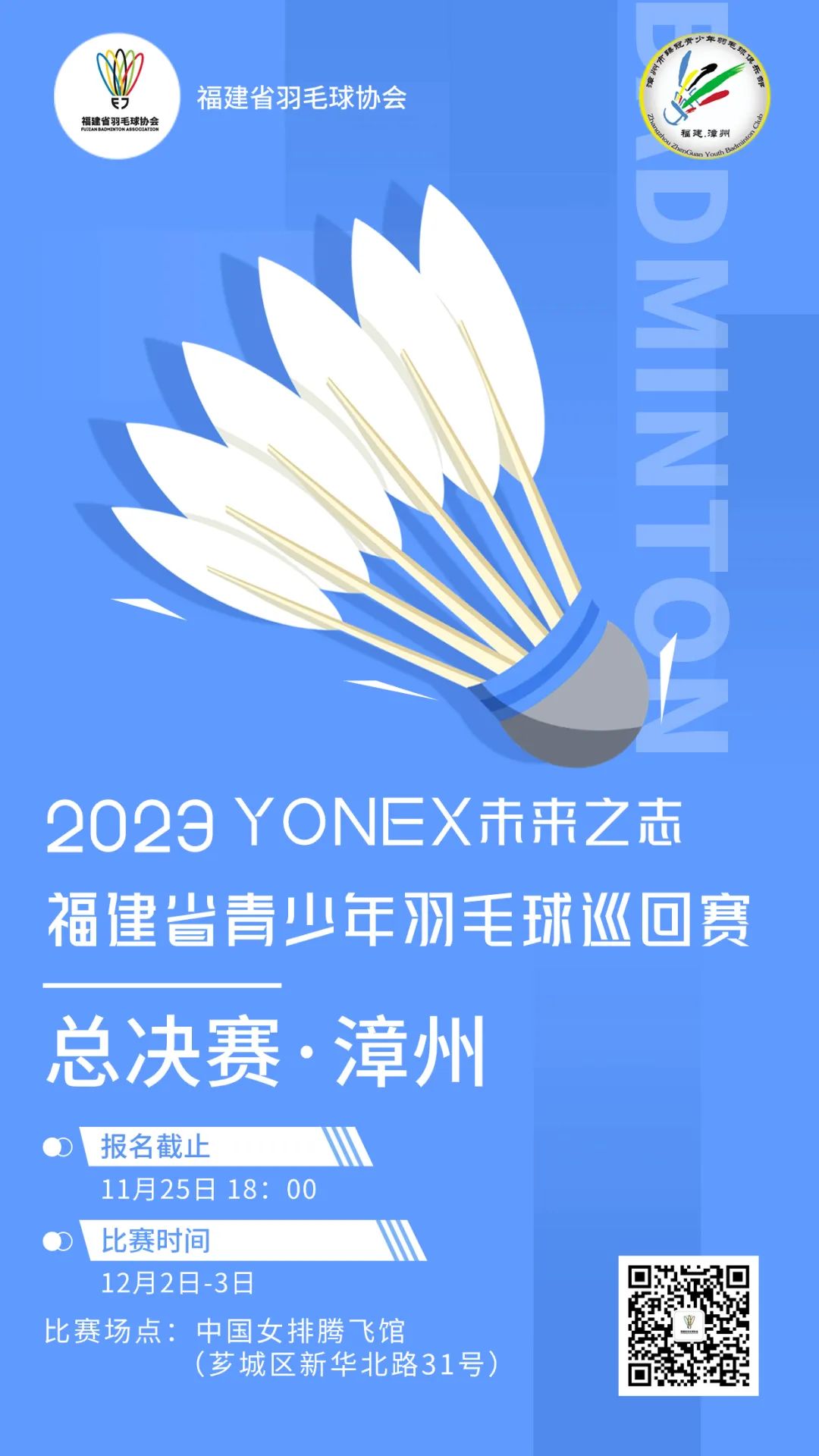 报名啦!2023福建省青少年羽毛球巡回赛(总决赛·漳州)下月开赛